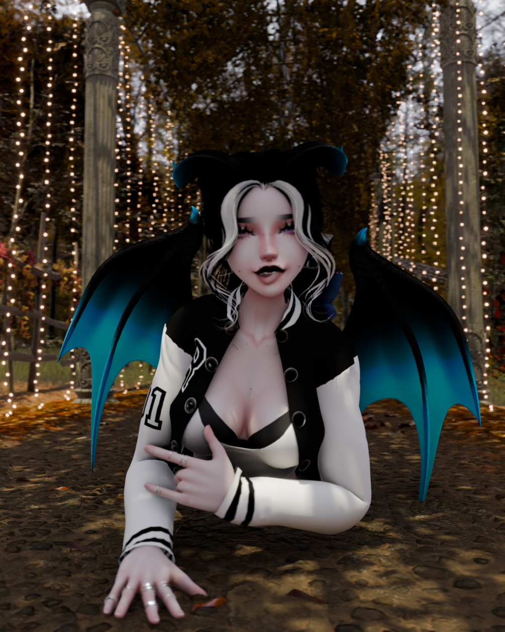 - 2 Hairs, 2 bangs, rings, jacket, tank top, bra, Cow Romper, swimsuit, jeans, underwear, thonsg, garter belt, Heels, Hair bow, Dragon horns, Dragon Tail, Dragon Wings